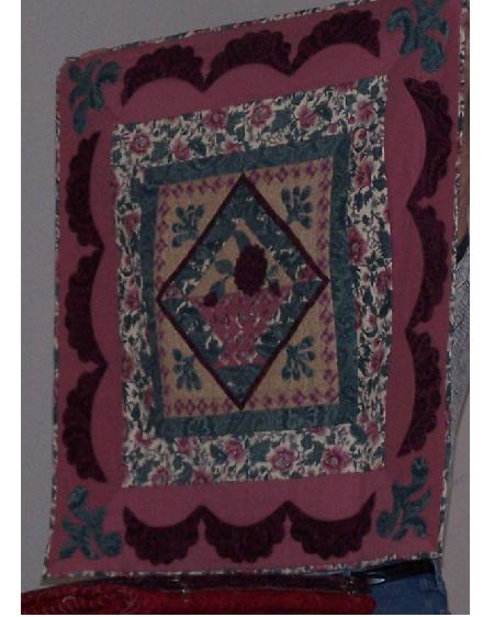 Reverse fusible applique - and presto, you have two blocks. And what blocks - wow! It was hard to believe that not only did Linda make the first one, but due to a vehicle being stolen, at least 16 of them she had to reproduce. Braver woman than some of us. Not all of her quilts are shown here as there was just so many, but you can go to her website at www.quiltingamongfriends.com and see some more of her work, order patterns and check out videos. Her outlook on life was an inspiration to all of us. Thank you Linda for a great program.