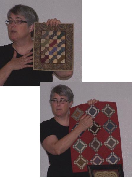 What did I tell you - lots of drooling wasn't there? Even her backs are neater than my full size ones. Such a wonder. I for one, will look at all scraps a heck of a lot different from now on. Elaine hoped to inspire us all to at least try making a miniature once - after seeing all the possibilities, I just might do that - right after I get my eyes checked out.